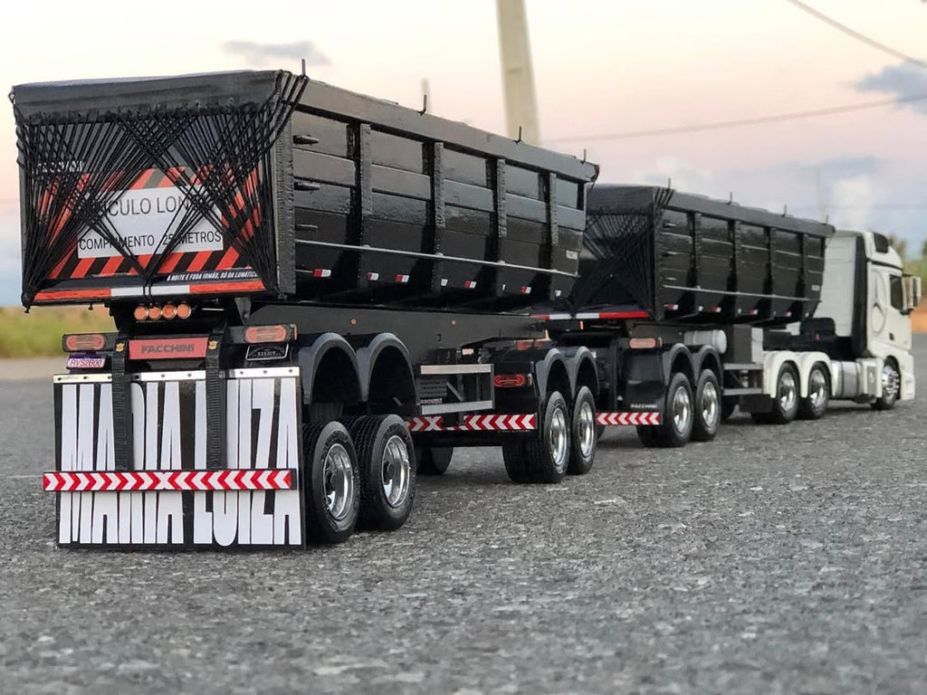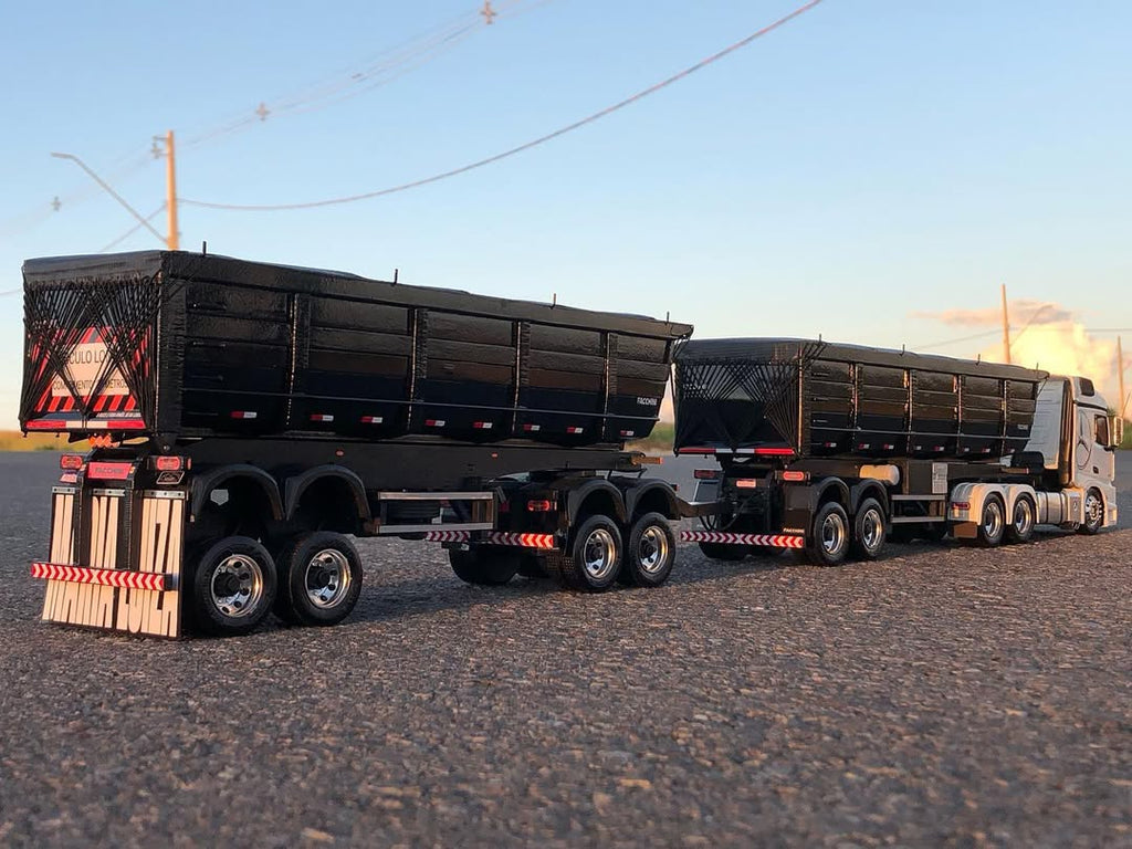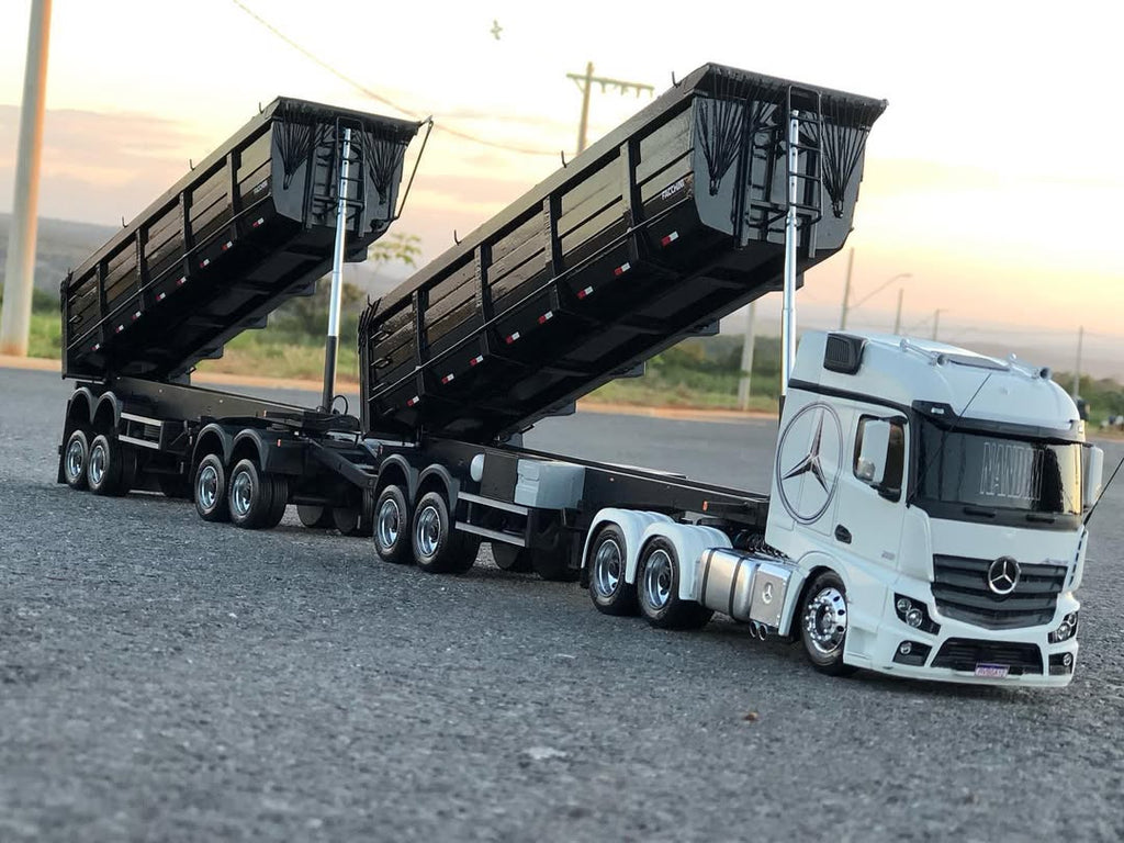 A miniatura Mercedes-Benz Arocs 3363 6x4 ClassicSpace, equipada com carreta Rodotrem Basculante Facchini, traz toda a força e imponência do pesado da estrela de três pontas para sua coleção.